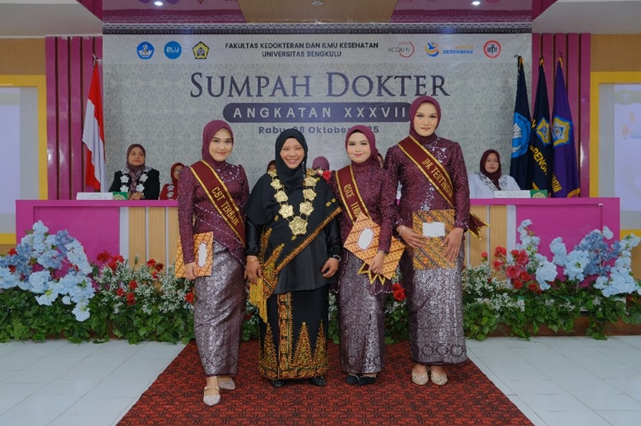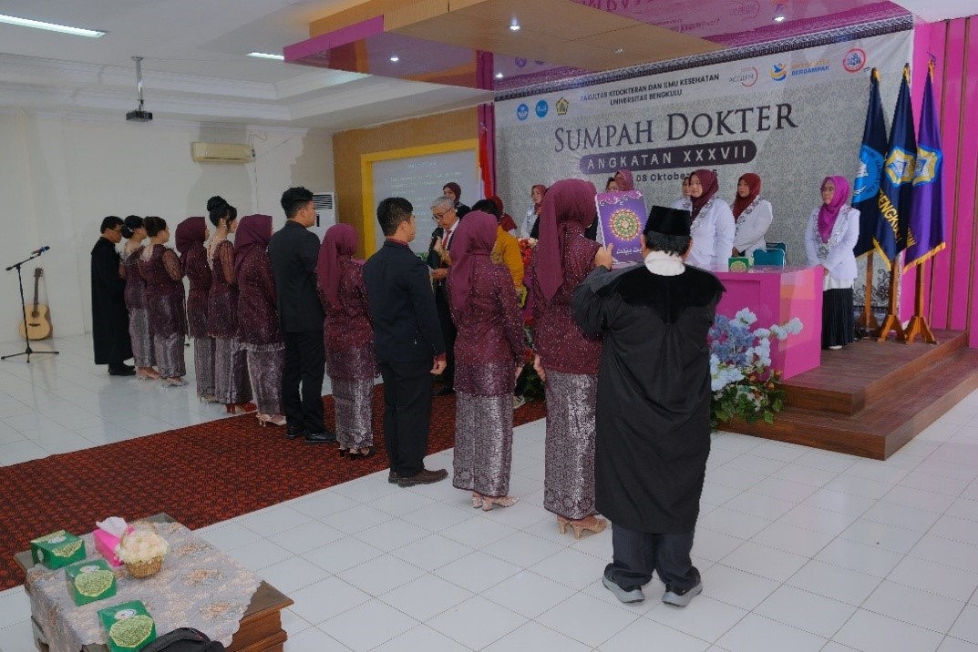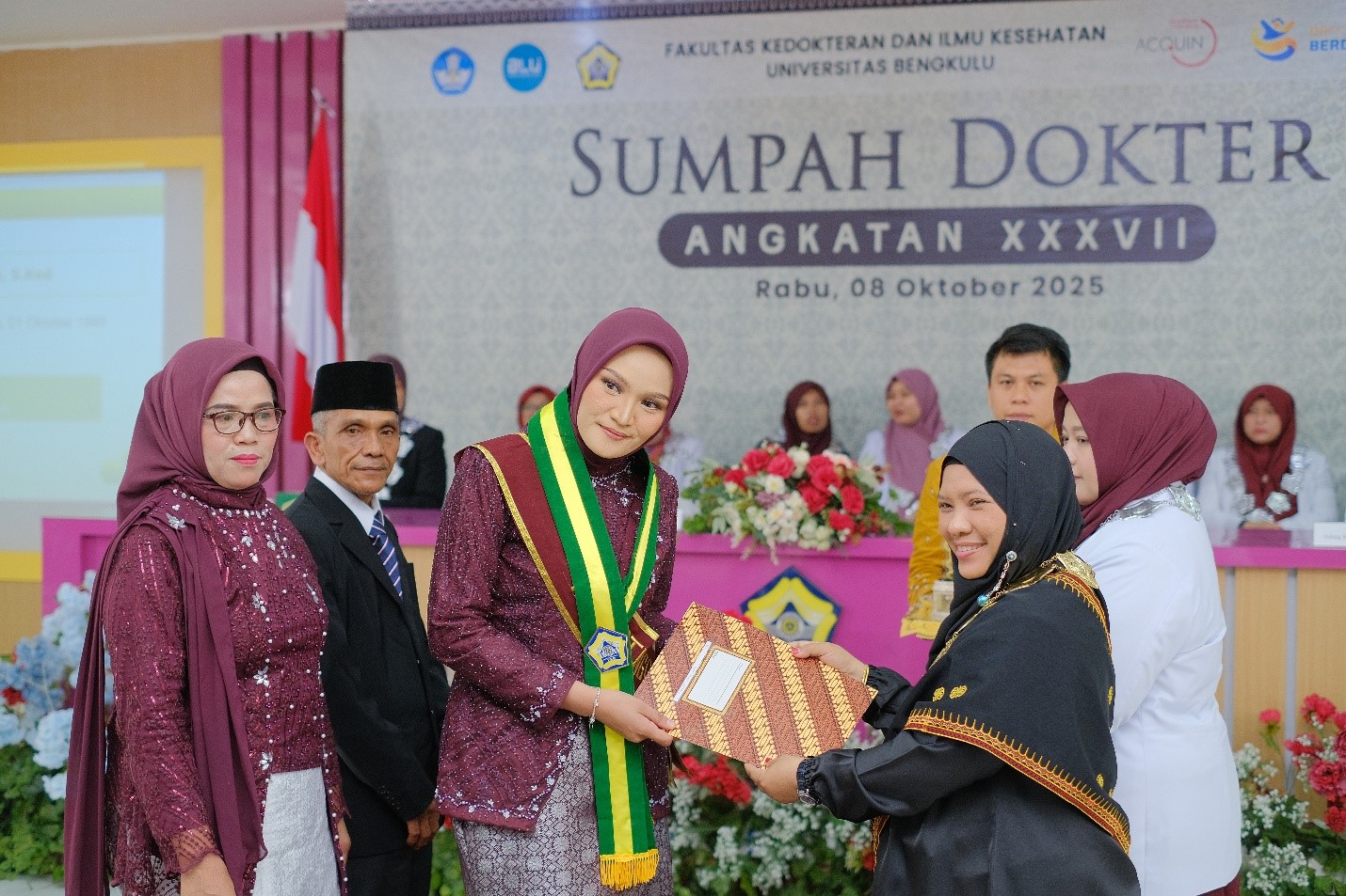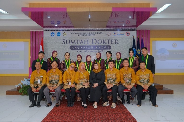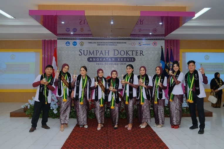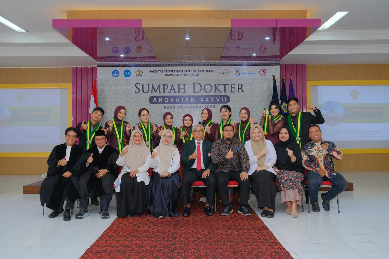 Fakultas Kedokteran dan Ilmu Kesehatan (FKIK) Universitas Bengkulu kembali menyelenggarakan Sumpah Dokter Angkatan ke-37 pada Rabu, 8 Oktober 2025. Dalam prosesi ini, sebanyak 10 lulusan dokter resmi dilantik dan menyandang gelar dr. setelah menyelesaikan seluruh tahapan akademik dan dinyatakan lulus Ujian UKMPPD periode Agustus 2025