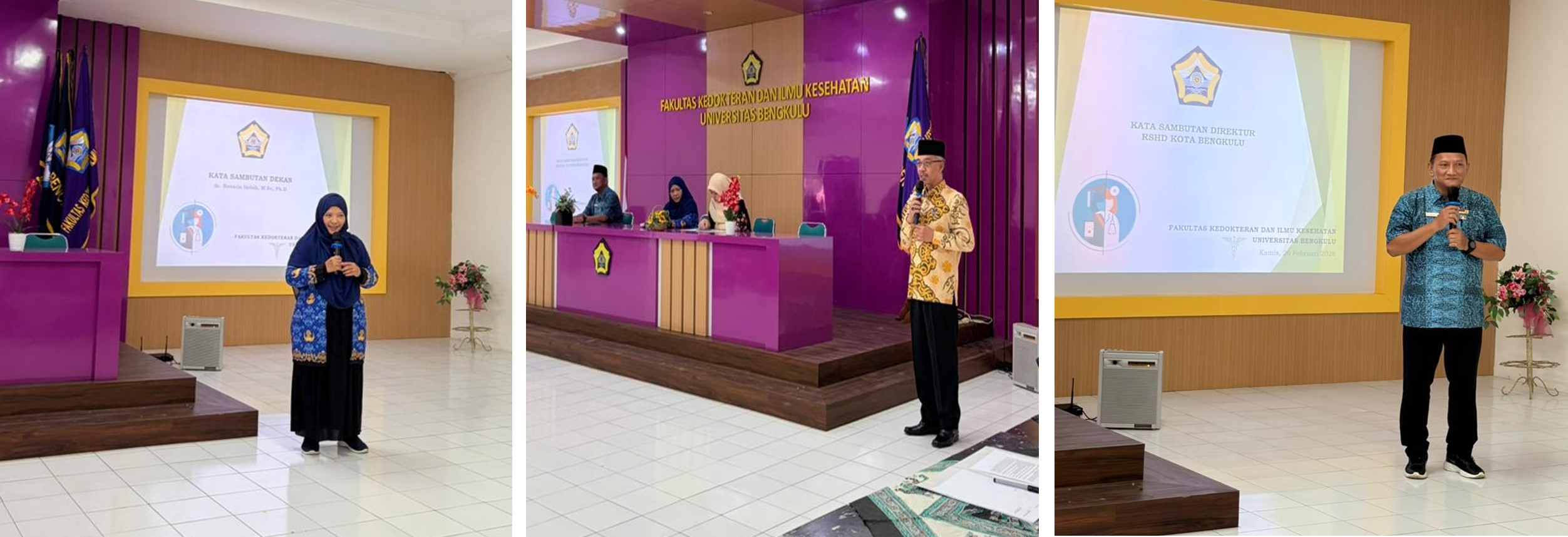 Gambar 1. Sambutan Dekan FKIK, Kepala Bidang Pendidikan RSUD M. Yunus, dan Kepala Seksi Pendidikan dan Pelatihan RSHD Kota Bengkulu